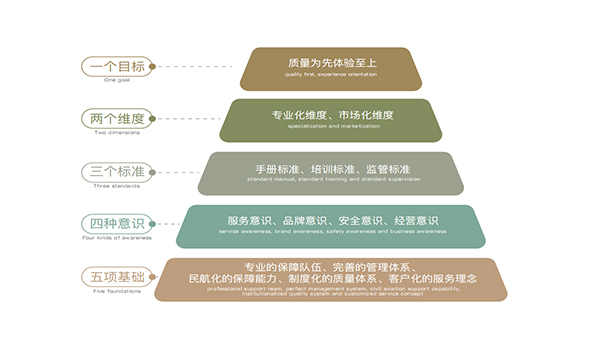 五項基礎——專業的保障隊伍、完善(shan)的管理(li)體(ti)系、民航化(hua)(hua)的保障能力、制(zhi)度化(hua)(hua)的質(zhi)量體(ti)系、客(ke)戶化(hua)(hua)的服務理(li)念